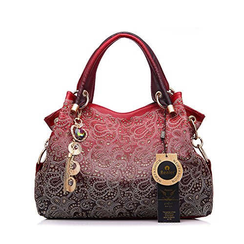 -. Brand : Realer -. ClothingSize : M -. Department : womens -. Feature : Ultra soft high quality hollow out leather with fabric lining. Modern gold-toned hardware.Top zipper closure. / Tubular top handles with twin buckles design; Adjustable and removable shoulder strap. / Hollow out Floral exterior with removeable a tassel and rhinestone charm. / Exterior: one back zipper pockets large enough to put iphone 6+, or store your keys, money at a convenience. Interior: Besides the large main compartment, there are interior slip pockets, an interior zip pocket. / 13.8" x 11.4" x 3.9"(WxHxD) handle drop 6.3" -. PackageQuantity : 1 -. ProductGroup : Shoes -. ProductTypeName : HANDBAG -. Size : M -. Title : Realer Ladies Leather Hobo Handbags Tote Bags Purses with Zipper for Women