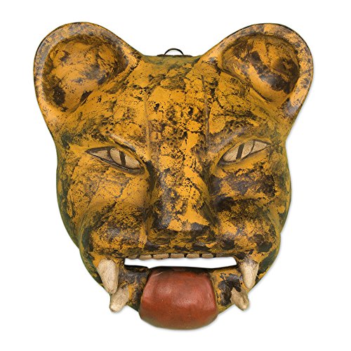 NOVICA Decorative Animal Themed Ceramic Mask, Yellow, 'Fierce Female Jaguar'