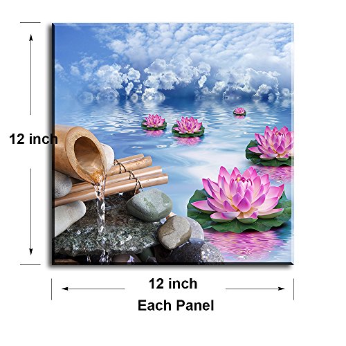 - Title : Piy Painting CANVAS PRINTS with Frame for Bedroom, Blooming Lotus Flower on Water Picture (Blue & Pink, 4 Panels/set)