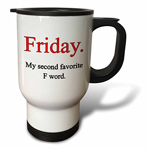 3dRose Friday My Second Favorite F Word. Red. - Travel Mug, 14oz., Stainless Steel (tm_186244_1)