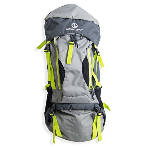 Tahoe Gear Fairbanks 75L Premium Internal Frame Backpack, Gray and Green