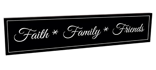 Faith Family Friends Black and White 5 x 24 Carved Wood Wall Art Sign Plaque