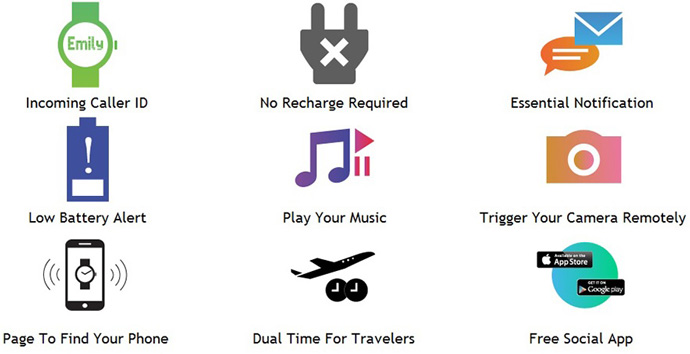 | More Connected Then Ever Before Cookoo 2 Smartwatch over more features like incoming call、 essensial notification、 low battery alert、 music control、 camera trigger、 dual time and more.