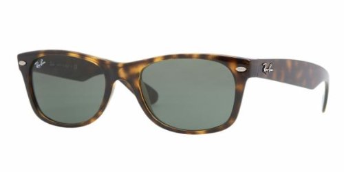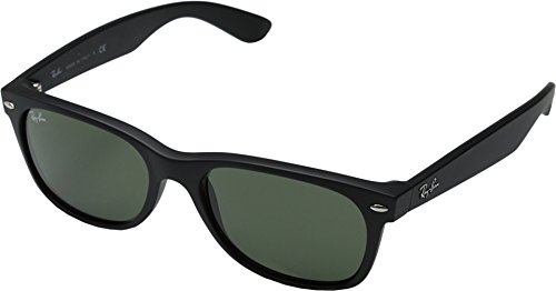 Ray-Ban RB2132 New Wayfarer Sunglasses Unisex (Shiny Black Frame Solid Black G15 Lens, 52)