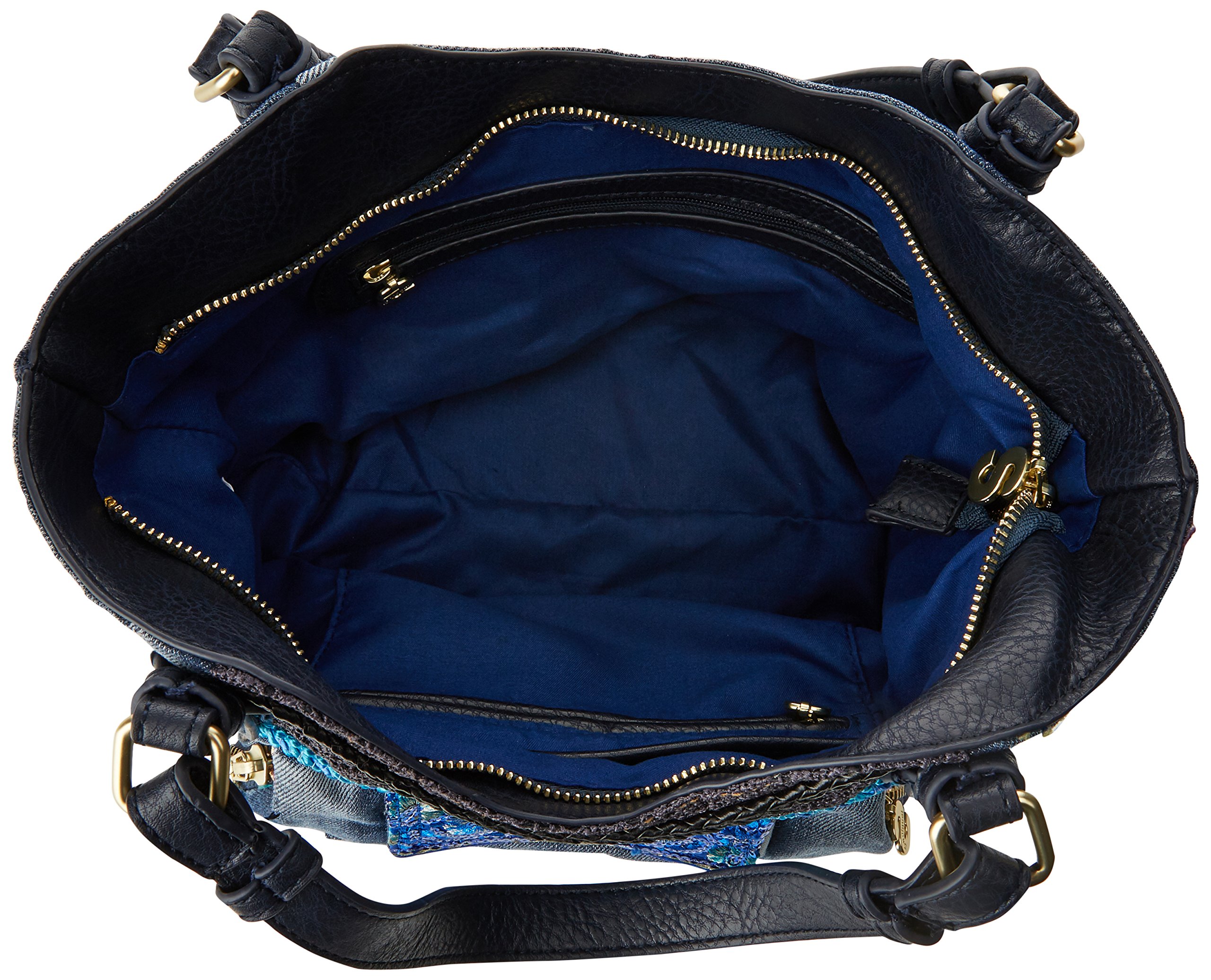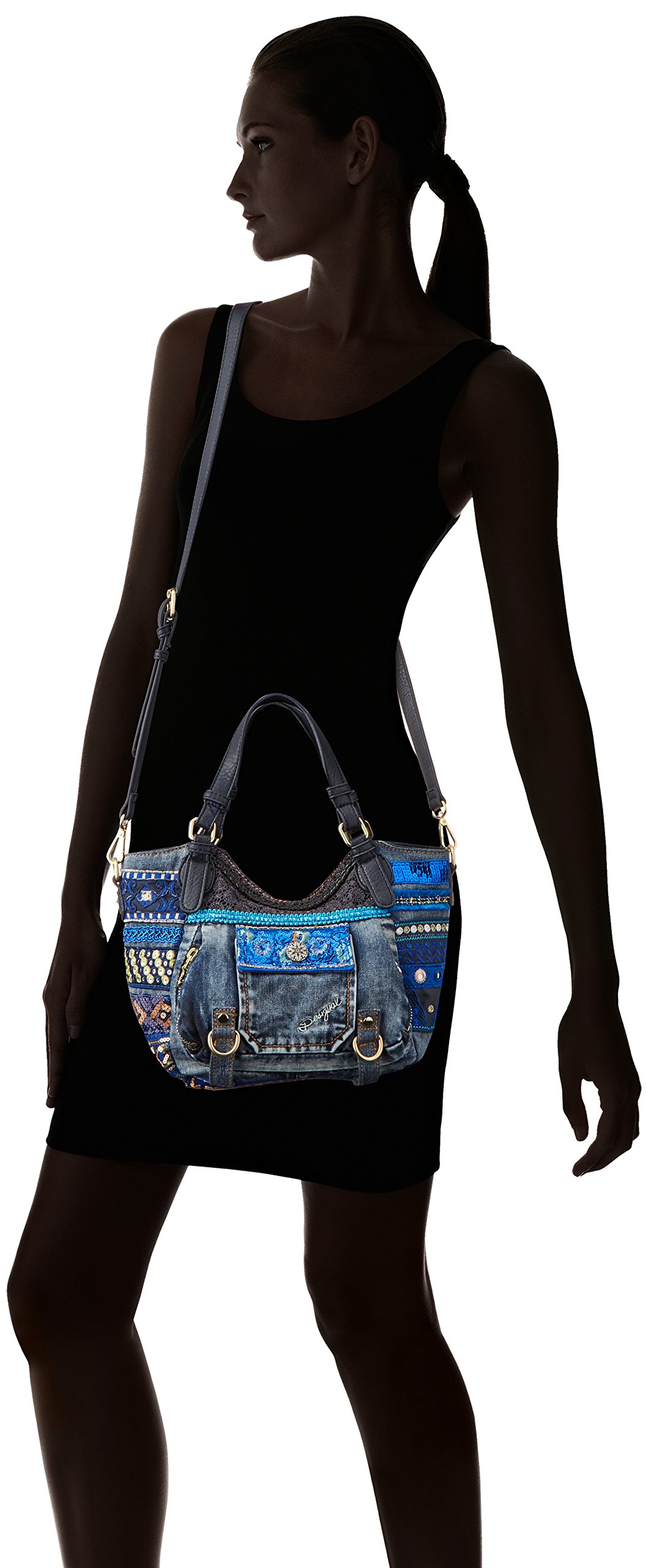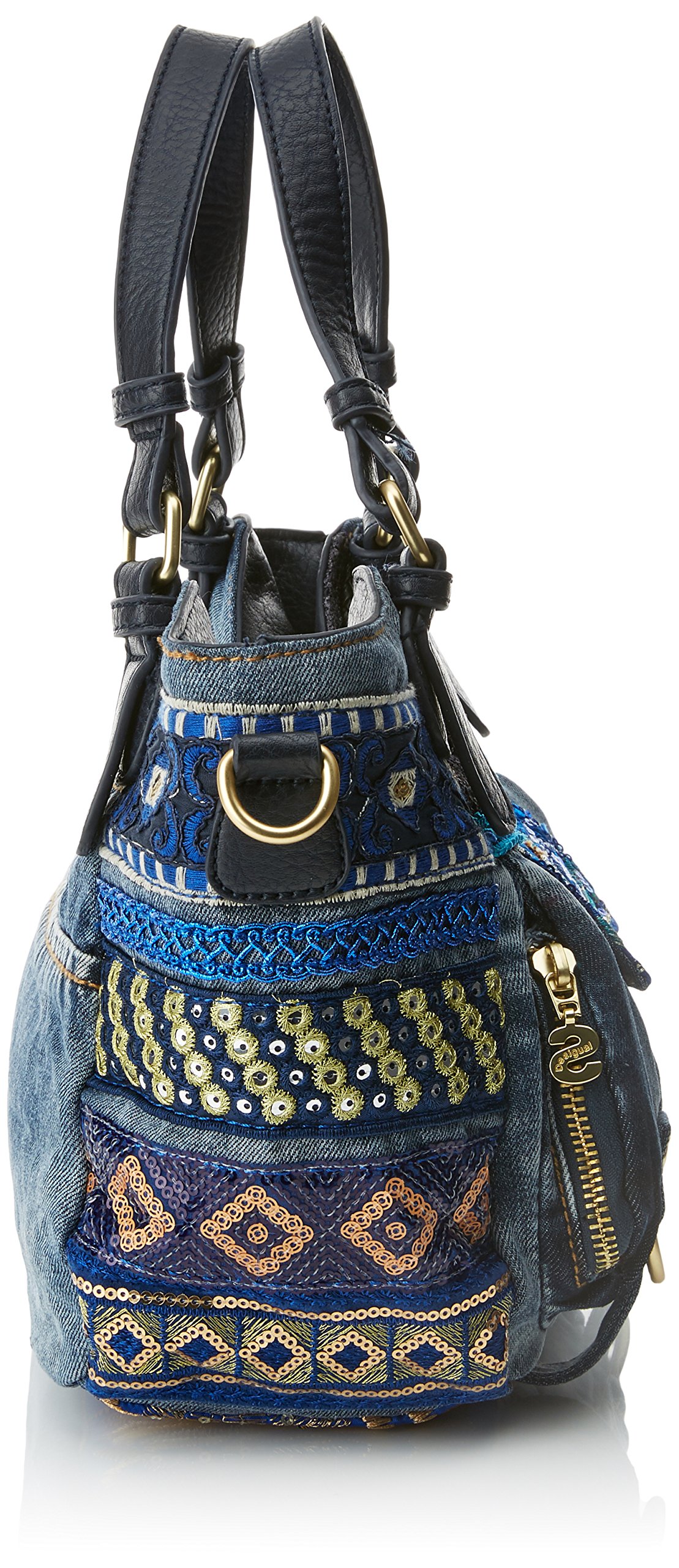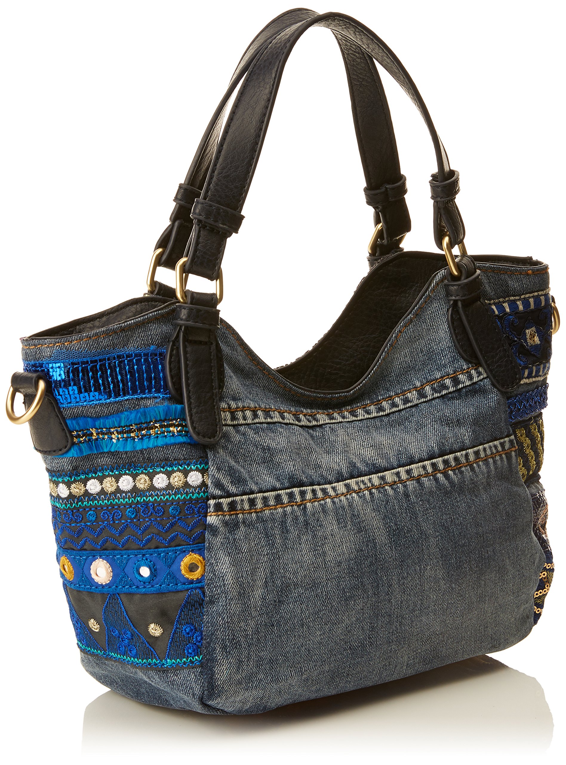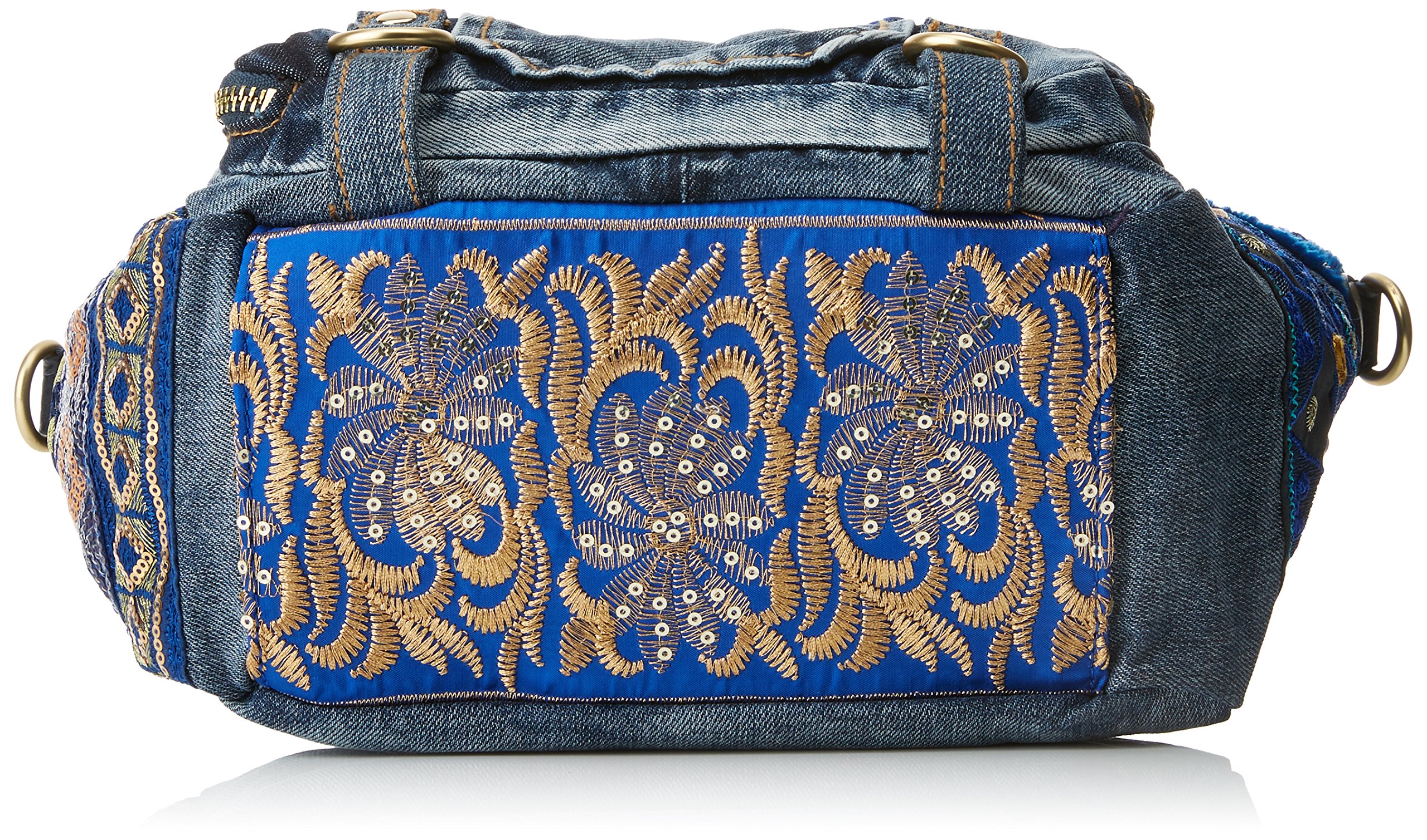 Embroidered detail on the denim area, multi-pocket specification bag.
