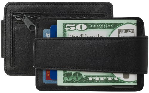 Binding : Apparel Product Description Lightweight security is what you would expect from the Patented DeepPocket Wallet. You get that and so much more like: NEW spring steel no-lift clip holds up to 20 bills and keeps one hand free to slide currency in and out. Two slots hold up to 5 or 6 credit cards. Side pocket with Velcro closure holds business cards. Strap with Velcro closure folds to cover and secure money and cards. Finish: Black top grain cowhide Special Feature: Outside zipper pocket for coins 0