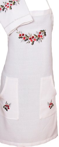 Xia Home Fashions Holly Berry Embroidered Hemstitch Adjustable Christmas Kitchen Apron