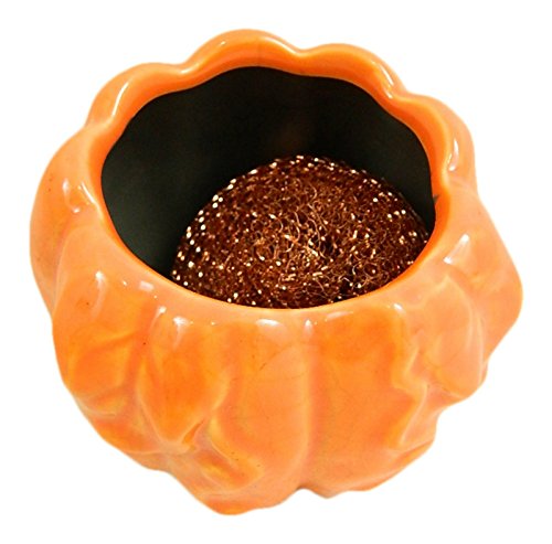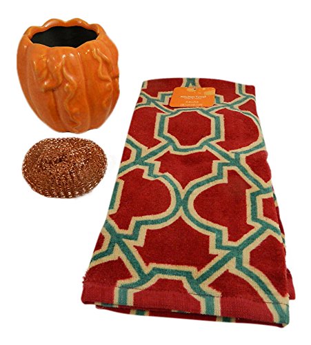 3 Pc Fall Harvest Kitchen Sink Bundle Includes: Pumpkin Scrubbie Holder, Copper Scrubbie, Printed Thick Tea Towel (orange)