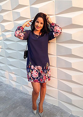 Title : Floerns Women's Chiffon Floral Long Sleeve Shift Dress Navy S