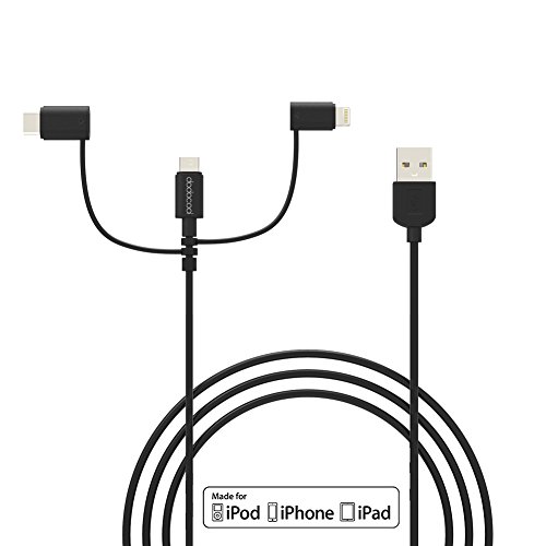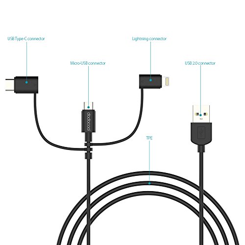 Package includes 1 * dodocool Micro-USB to USB Cable with Lightning and USB-C Adapter