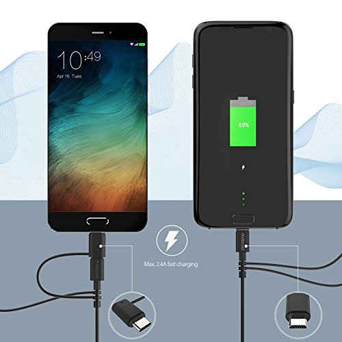 Overview dodocool 3.3ft Micro USB to USB Cable with Lightning and USB C Adapter enables you to charge and sync your device with a Micro USB port, Lightning port or USB C port rapidly and safely using just one cable. Support data transfer rates of up to 480 Mbps and the charging current of up to 2.4A. It is a perfect solution for using the Micro USB cable with your Lightning device or USB C device.