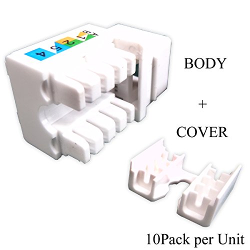 Generic 10-pack Cat6 RJ45 Keystone Jack Punch-Down Stand in White Ethernet Module Network Coupler