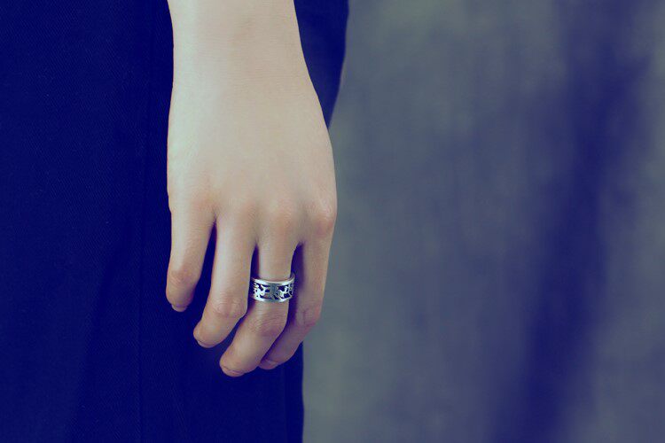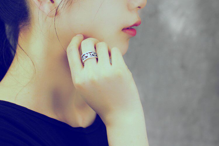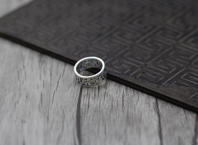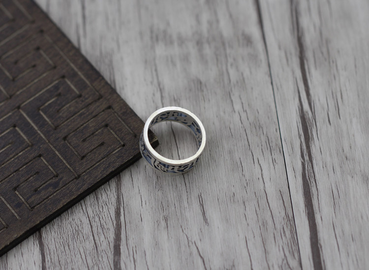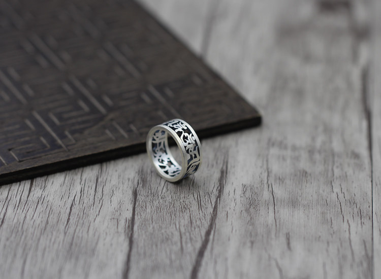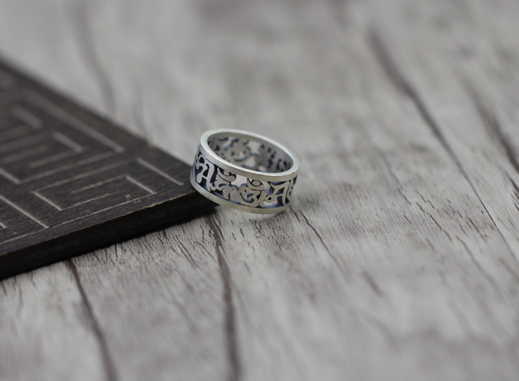 佛教辟邪经文镂空指环 六字真言泰银戒指男女款 s990足银纯银饰品