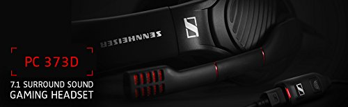 Meet the Sennheiser PC 373D The PC 373D gaming headset blends legendary Sennheiser sound quality with Dolby Headphone 7.1 Surround Sound processing to deliver an immersive gaming experience combining spatial realism and pinpoint directionality. The new and improved surround sound software make it easy to customize the soundfield to your gaming style. Crystal clear game time communication is possible thanks to a professional-grade noise-cancelling microphone that automatically mutes when lifted. The over-ear design with XL velvet ear pads deliver extreme comfort during long gaming sessions. Get into the game with the Sennheiser PC 373D! Sennheiser Transducer Technology Exceptionally accurate, detailed and dynamic sound is delivered so you hear every detail of the game. Noise Cancelling Microphone Experience crystal clear voice communication and convenient muting when the boom arm is lifted. Dolby 7.1 Surround Sound A USB soundcard dongle provides Dolby 7.1 Surround Sound processing delivering spatial realism to enhance your game. Ear Coupling Around Ear Transducer Principle Dynamic, open Cable Length 1.7 m + 1.2 m Headphone Frequency Response 15 – 28,000 Hz Impedance 50 Ω Sound Pressure Level 116 dB Microphone Frequency Response 50 – 16,000 Hz Pick-up Pattern Noise-cancelling Sensitivity -38 dBV/PA Connector Plugs USBFeature