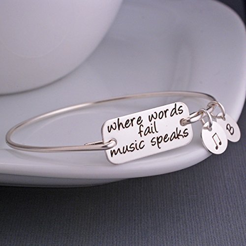 -. Title : Sterling Silver Where Words Fail Music Speaks Bangle Bracelet, Personalized Music Jewelry