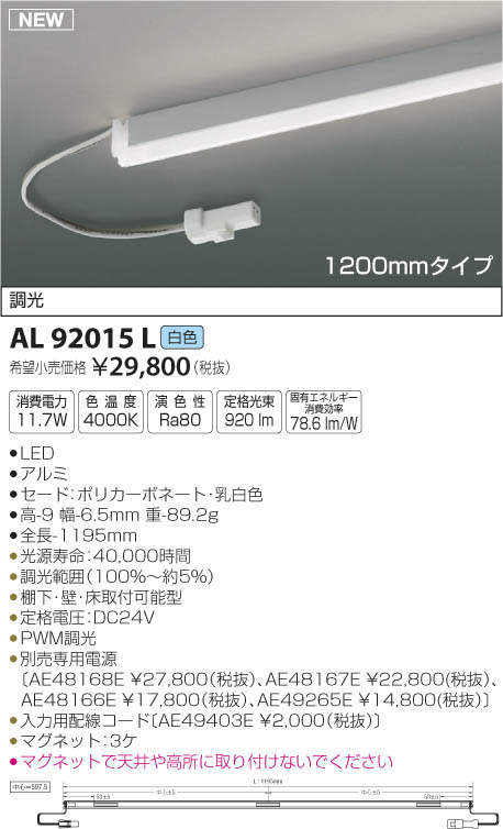 ●別売専用電源〔AE48168E \27,800(税抜)、AE48167E \22,800(税抜)、AE48166E \17,800(税抜)、AE49265E \14,800(税抜)〕