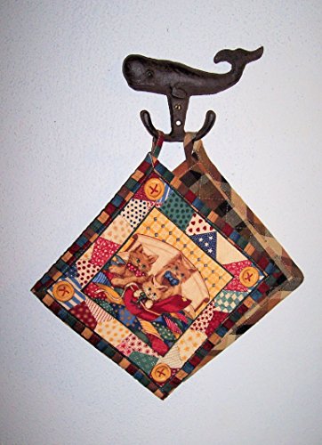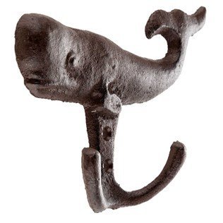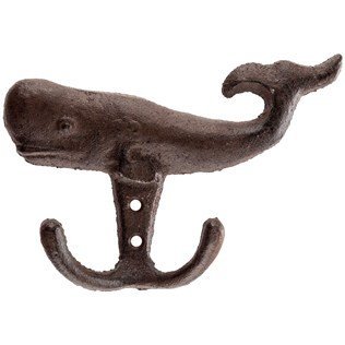 -. Feature : Wall hung with two hooks - Hanger hook whale antique style - Indoor or outdoor use / Made of heavy cast iron - Rustic dark bronze finish - Hangers on the belly of the whale / Hanger measures approximately: 6-3/8 in x 4-1/2 in - Extends 1-1/4 in from the wall - Hangs by two screws - Not included / Inside use for hanging coat and hat, keys, jewelry, candles, wall decoration and more - Outdoor use for hanging towels, hand towels, bathing suits, bathing accessories, and more - New, ever been used / Note: To see cast iron discounted products +++ Search on Amazon: ABC Products Cast Iron