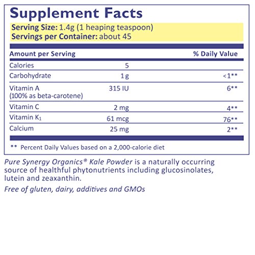 Pure Synergy Organics Kale Vegetable Powder 2.3oz USA grown by The Synergy Company