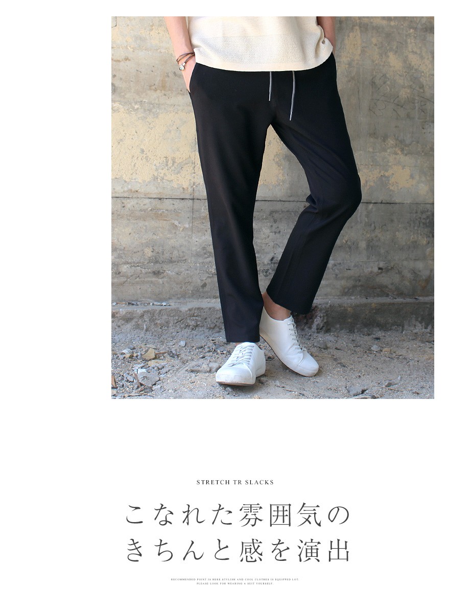 上品な光沢感がきちんと感を演出するTRアンクルパンツ。ストレッチ性のある生地なので屈伸等も楽な快適さが自慢のアイテム。旬のくるぶし丈も軽やかなスタイルを演出する事が出来るパンツになっております。着こなしやすいベーシックなカラー展開でお好みの一点をお選びいただけます。