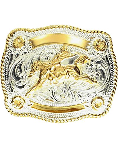 Studio : M F Western Publisher : M F Western Binding : Apparel Product Description You little one will be all decked out sporting this western belt buckle Buckle features gold-tone and silver-tone accents. Gold-tone bucking bronco adorns front. Buckle measures 2" x 2 3/4". Imported. 0