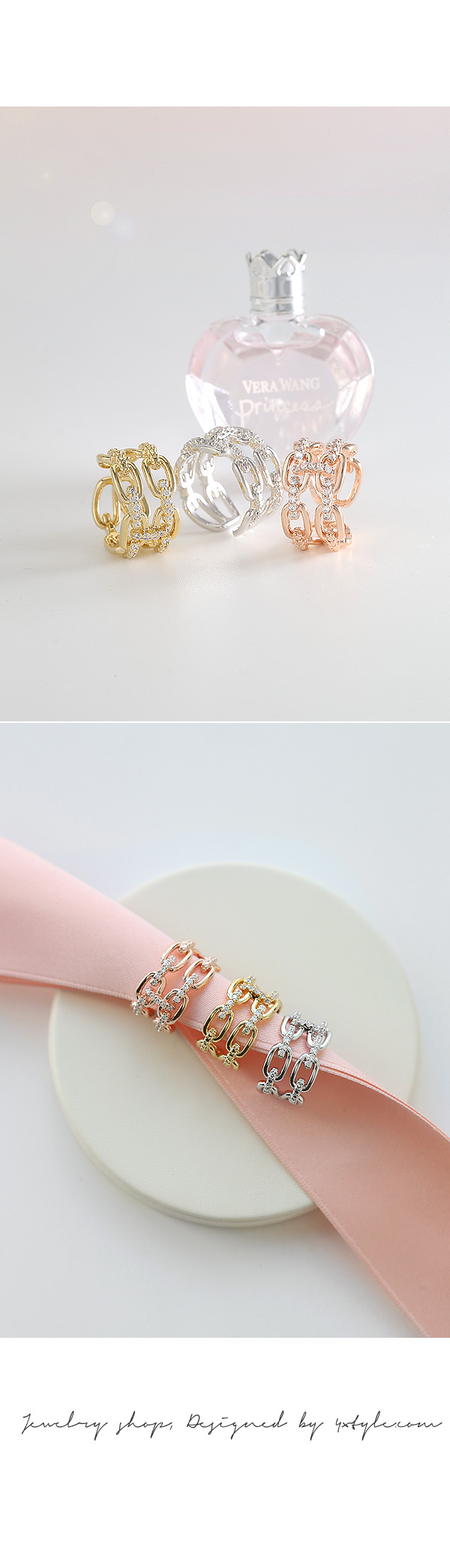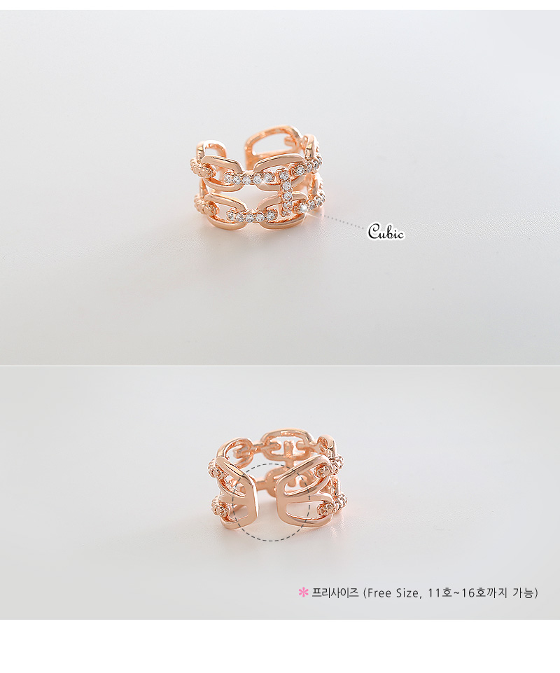 볼드한 체인 디자인이 시크하고 화려한 무드를 연출하는 링제품.