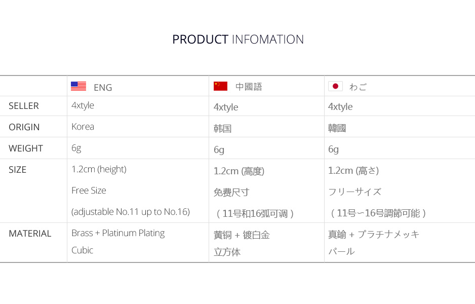 눈부시게 반짝이는 물림 큐빅 셋팅으로 고급스러운 하이퀄리티 제품.프리사이즈로 사이즈 구애가 적어 실용적인 제품.