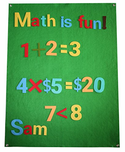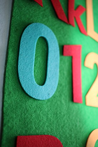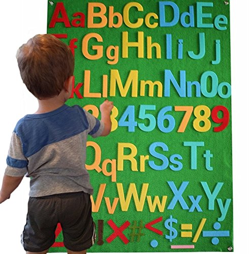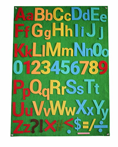 HUGE SIZE: Giant 41" Deluxe Felt Alphabet Letters Numbers and Math Symbols Kit! All elements measure 4" tall. Fun and easy to use, no magnets needed! Includes 2 sets of brightly colored upper case and lower case alphabet letters and 4 sets of numbers and math symbols to practice colors, reading, spelling and math. All elements are the perfect size for little hands.