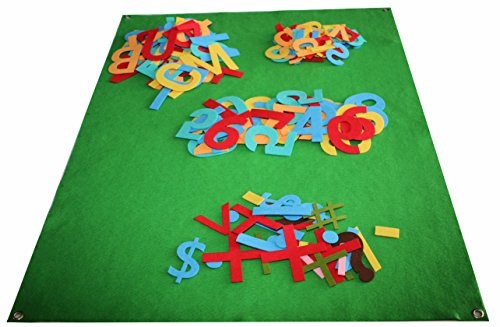 INCLUDES: Re-sealable package contains 150+ pieces. (1) 41"x29.5" giant wall felt background piece. Alphabet letters, (both upper case and lower case, totaling 2 sets of each) numbers and math symbols, totaling 4 sets of each. Packaging is resealable for easy storage.