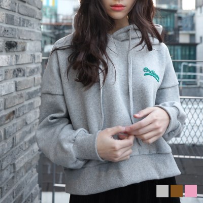 볼록한 레터링 자수가 포인트인 크롭 후드 티셔츠를 소개합니다 !