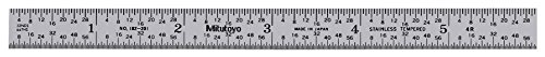 Mitutoyo 182-201, Steel Rule, 6" (4R), (1/8, 1/16, 1/32, 1/64"), 1/64" Thick X 1/2" Wide, Satin Chrome Finish Tempered Stainless Steel
