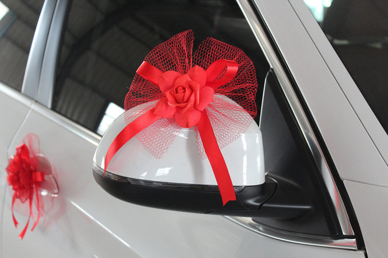 婚庆用品结婚车把手蝴蝶拉花 婚礼花车装饰仿真车把花 后视镜拉花