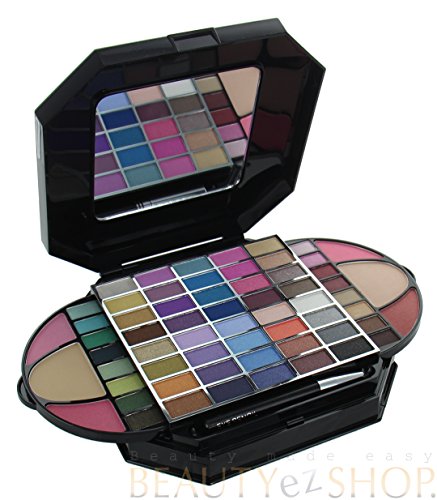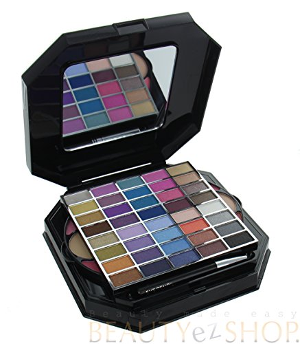 -. Feature : 33 EYESHADOW COLORS, 6 BLUSHES, 2 PRESS POWDER, 5 LIP GLOSS / 2 LIP GLOSS STICKS, 1 EYE PENCIL, 1 LIP PENCIL / 1 BLUSH BRUSH, 4 LIP/EYE APPLICATORS / PROFESSIONAL ALL IN ONE MAKEUP KIT / BEAUTIFUL HIDE AWAY CASE