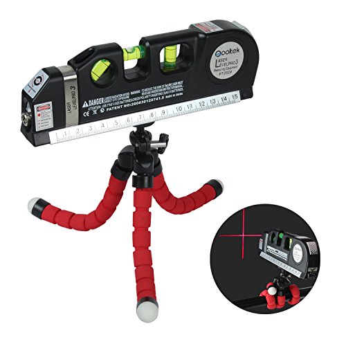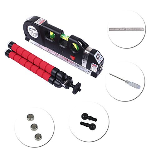 Qooltek Multipurpose Laser Level Line Laser Measure + 8ft Tape Ruler Adjusted Standard and Metric Rulers with Octopus Style Tripod Stand