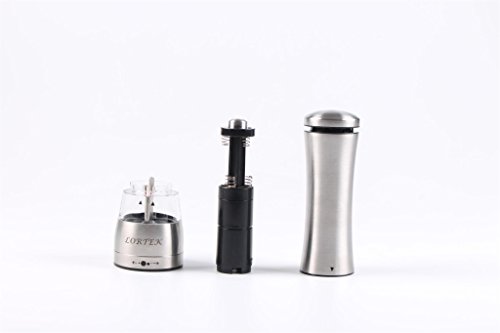 Electric Pepper Grinder or Salt Mill (1 pk) Premium Automatic Stainless Steel Shaker, Battery Operated with Adjustable Ceramic Grinder and LED Light , by Lortek