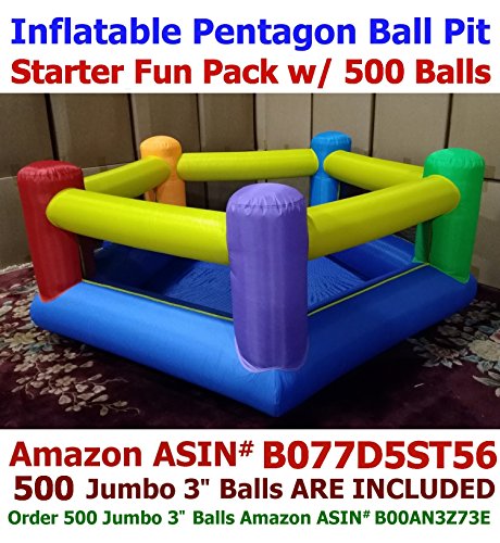 Studio : CMS Publisher : CMS Binding : Toy Product Description * Similar Model Featured on Youtube: youtu.be/S3xgLrHeiqU * THIS IS NOT A BOUNCE HOUSE, JUST A BALL PIT * World's 1st of It's Kind. Perfectly Size for indoor(outdoor) use. Manuf. by CMS w/ Phthalate Free; Lead Free; BPA Free; non-PVC; Puncture Tear Resist Nylon Materials In 6 bright colors: Red, Yellow, Orange, Blue, Green Purple. This Unique Fabric similar (but much thicker grade) to one used to build camping tent, custom coated w/ a child safe Colorless lamination/backing to retain air. > For Safety Reason proper cushion of ball pit area, minimum 1,000 JUMBO 3" BALLS REQUIRED ( 500 INCLUDED w/ this Pre-Bundled Package Deal ). For package without Balls, please order Amazon ASIN# B07462B5NM . We recommend the Color Matching My Balls Brand Jumbo 3" balls instead of the smaller 60mm/2.3" Balls ( 2500~3000 Required ). Larger 3" Balls are 2.3 times the size by volume compared with 2.3" Balls, and therefore, you would need 2.3 times as much the smaller balls to fill the same ball pit area. > Unique Ball Pit designed to fit restricted indoor space. Overall footprint approx 90" L x 90" W ( include blower) w/ All around safety net. Ball Pit area measured approx 50" x 50" with a depth up to 24" will support multiple (yes, as many you can fit ) kids or adults of all ages weighs. perfect to use as a play-pen, fortress, or simply as a Ball Pool fun for the whole family. Minor cuts/leaks will not affect the function of the unit, or it can be easily fixed using even duct tapes. > Easy setup! Ball Pit inflates ready for use in less than 60 seconds using the included blower. Deflates pack away in less than 2 minutes. Overall weigh less than 20 lbs including the blower for easy storage transport. Package Includes the specific Ball Pit ordered, a 350W UL Low Noise continue-flow Blower(must be on during use), Balls(for Bundled Package), Storage Bag, Ground Stakes, Patch Materials and simple Instructions. > For full product detials, please visit www.cmsworldwidesales.com 0