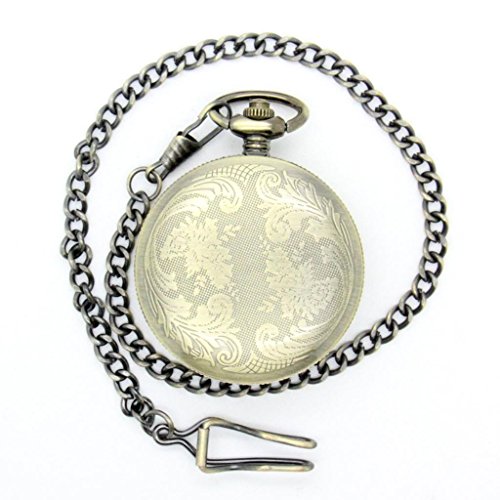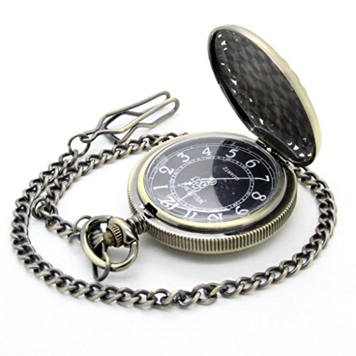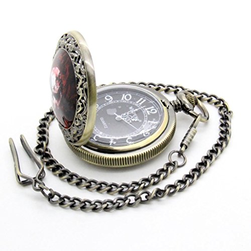 -. Feature : Quartz pocket watch / Bronze chain and case / Unique skull image cover / One side open pocket watch / Retro Style