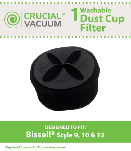 -. Feature : 2 Washable and Reusable Bissell Style 9/10/12 Filter by Crucial Vacuum / Compare to Part # 2031183, 203-1183, B-203-1183, B-203-1085ES, 203-108532065, DJ61-00680 / Fits Bissell Powerforce Bagless vacuums, Bissell Cleanview II series vacuums and all other Bissell models that call for a Style 9, Style 10, Style 12 filter / Absolutely Essential for Allergy Sufferers! / Designed and Developed in the USA by Crucial Vacuum