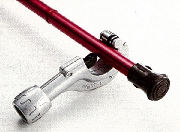 丸い刃が危険なく簡単にパイプ杖をカット