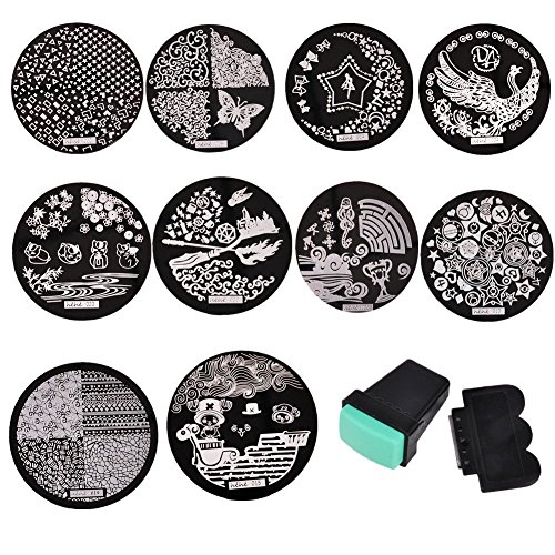 Title : Biutee 10PCS Round Stainless Steel Image Plate 1 Stamper 1 Scraper Nail Art Stamping Template Tools