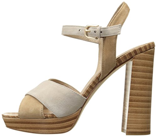 Product DescriptionPlatform two-piece dress sandal with criss cross upper and buckle ankle strap closure0
