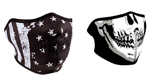 -. Feature : This Product is a 'Bundle' of 2 Neoprene Face Masks identified as a 'Black & White Vintage U.S. Flag Face Mask' and a 'Black & White Skull' / The First Facemask is the ZanHeadgear 'Black & White Vintage U.S. Flag Face Mask' Half Face Neoprene Face Mask / The Second Facemask is the ZanHeadgear 'Black & White Skull', Glow in the Dark, Half Face Neoprene Face Mask / These Face Masks / Ski Mask are made of Durable, Naturally Warm & Water Resistant Neoprene Face Mask Material / The Mask Sizes are adjustable, by up to 2 inches, using the Hook & Loop closure, located at the back of the head