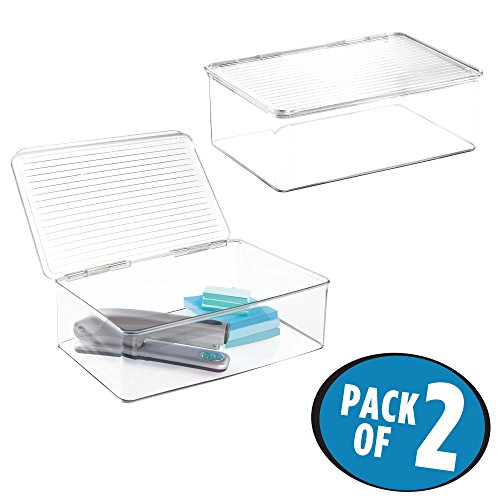 mDesign Office Stacking Storage Organizer Boxes for Highlighters, Staplers, Notepads - Pack of 2, Clear