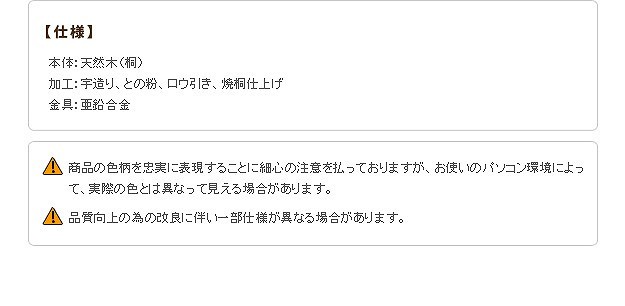 材質:本体-天然木(桐)・字造り・との粉ロウ引き・焼桐仕上げ、金具-亜鉛合金(黒色)