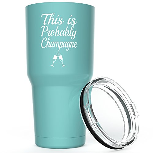 This Is Probably Champagne Stainless Steel Tumbler with Lid - 30 oz Vacuum Insulated Large Funny Travel Mug Tumblers for Hot Coffee and Cold Drink - Novelty Gifts for Men Women Mom Dad - Black