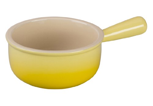 Studio : Le Creuset of America Publisher : Le Creuset of America Binding : Kitchen Product Description Sleek and stylish, this French-onion soup bowl by Le Creuset brings both beauty and versatility to any kitchen collection. The charming 16-ounce bowl, which measures approximately 6-2/5 by 4-1/5 by 2-1/2 Inch, provides a cylindrical shape with a flat base and tall sides--perfect for keeping soup hot at the table. Use it for a variety of favorite soup recipes, including the classic French Onion--complete with caramelized onions, flavorful broth and a hearty slice of French bread. 0