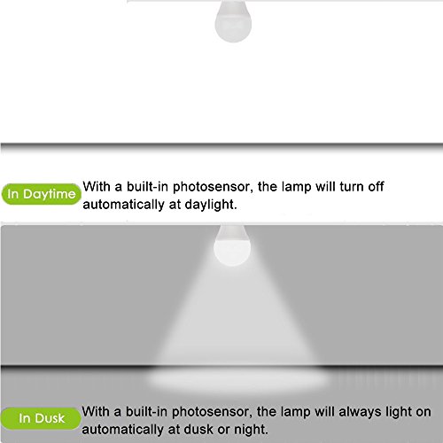Studio : Aukora Publisher : Aukora Product Description Enjoy Your Colorful Life, Just Start From Aukora! The dusk dawn light bulbs with auto switch are very convenient in home life, it will detect the absence of light and light up automatically dusk till dawn. This smart sensor lights bulb could be widely used in front porch, basement, front door, garage, carport, stairs, corridor, patio etc, perfect for urban dark-street deep porch without street lights. It is like an intelligent servant, lighten your way home. Specifications: Energy Class: A Material: Aluminum PC Input Voltage: AC85-265V Beam Angle:180 degrees Lamp Style: E26/E27 Output Power: 7W(equivalent to a 50 watt incandescent bulb) Color: Cold White (6000-6500K) Lifespan:>30,000 hours Luminous: 630lm NOTE: 1.Turn off the power before you install the bulb 0