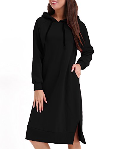 -. Title : スタイルドーム(StyleDome) 長袖 ロング パーカー 裏起毛 厚手 フード付き チュニック ワンピース かわいい あったか 体型カバー ワンピース 膝丈 原宿系