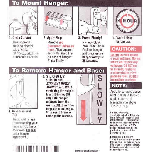 The revolutionary Command™ Adhesive, holds strongly on a variety of surfaces,(paint, wood, tile etc.) and removes cleanly — no holes, marks, sticky residue or stains. Rehanging them is as easy as applying a replacement Command™ Refill Strip, so you can take down, move and reuse them again and again!
