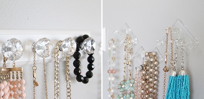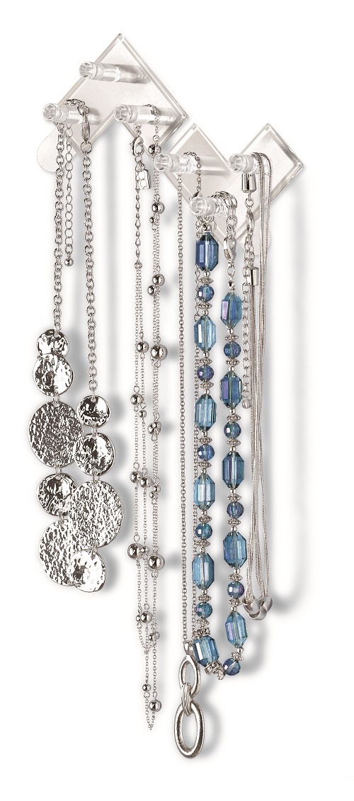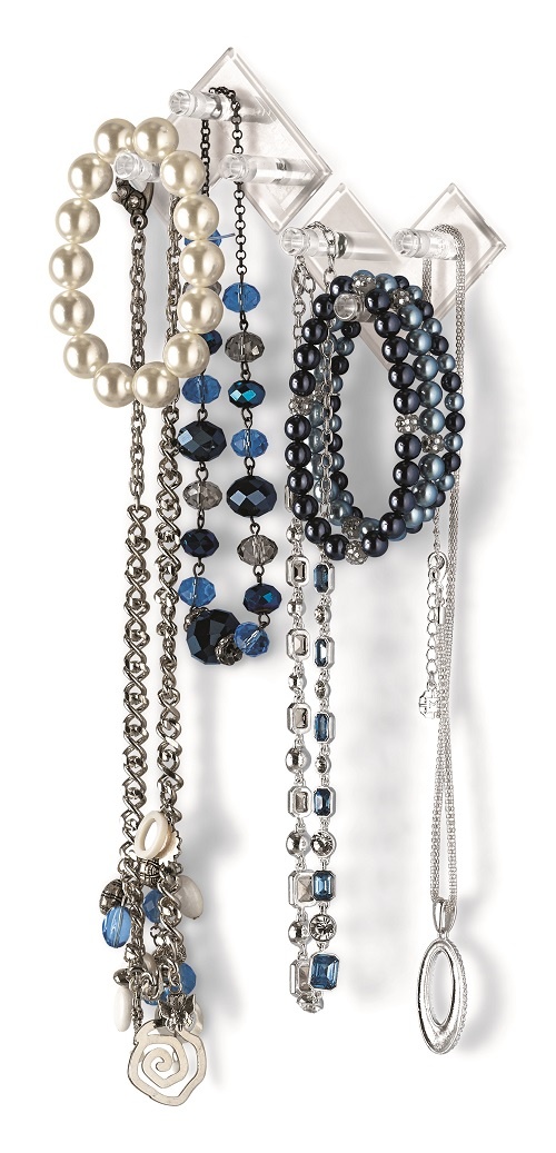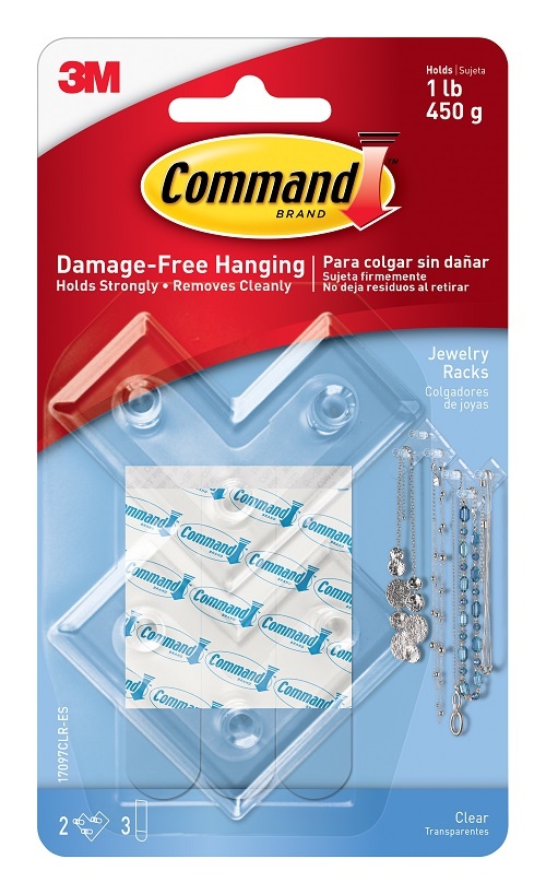 The Command™ Clear Jewelry Rack & Crystal Hooks are great for displaying and organizing your jewelry in your bedroom and closet. They blend in seamlessly- allowing you to show what matters most, your decor, not how it's hung-up. Now you can free up more closet or desk space with accessories hanging on the wall!