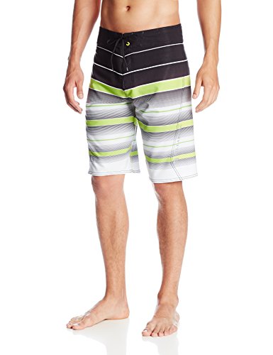 - Feature : Bright boardshort in shaded horizontal stripes featuring angled contrast stiched seams and logo cargo pocket / Drawstring waist / Performance-fit H2 water repel fabrication / Performance fit 21 inch px3 recycler stretch board short / H2 repel fabric